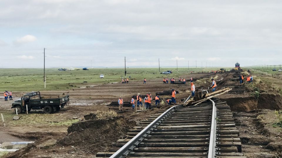 Мөн Зуунмод-Мандалговь чиглэлийн замын Бөхөгийн гүүр орчимд үерийн ус ихээр орж ирж тээврийн хэрэгсэл зорчиход хүндрэл үүссэн, Улаанбаатар-Сайншанд чиглэлийн төмөр замын 554-585 дахь км-т 8 хэсэг газарт нийт 2.5 км төмөр замын далан үерийн усанд сэтэрч, эвдрэлд ороод байна.