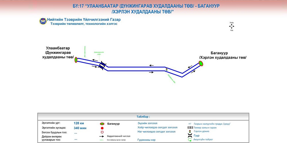 Нийтийн зорчигч тээврийн буухиа үйлчилгээний БҮ:17 “Улаанбаатар /Дүнжингарав худалдааны төв/- Багануур /Хэрлэн худалдааны төв/” чиглэл нь 2020 оны долоодугаар сарын 10-ны өдрөөс эхлэн Дүнжингарав худалдааны төвөөс үйлчилгээ үзүүлнэ. Иймд иргэд та бүхэн доорх замналын дагуу зорчилтоо төлөвлөн зорчино уу.