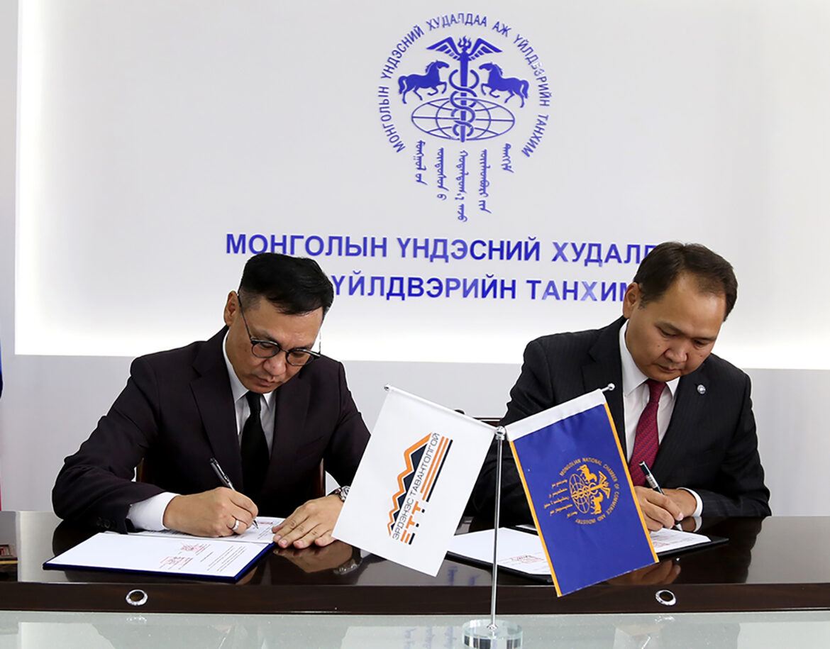 “Эрдэнэс-Тавантолгой” ХК-ийн Гүйцэтгэх захирал Б.Ганхуяг болон Монголын Үндэсний Худалдаа аж үйлдвэрийн танхимын Ерөнхийлөгч О.Амартүвшин нар Хамтран ажиллах санамж бичгийг 2020 оны 9 дүгээр сарын 21-ний өдөр байгууллаа.