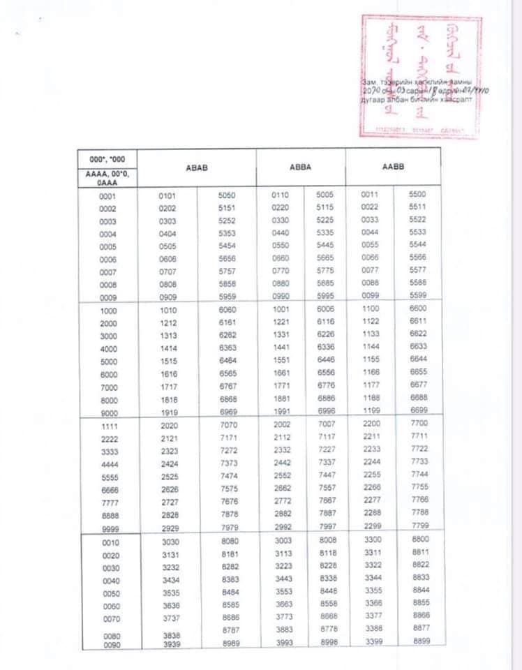 Зам, тээврийн хөгжлийн дэд сайдын 2020.09.18-ны өдрийн чиглэл өгөх тухай албан бичгийн дагуу иргэдийн сонирхдог, “азын” гэх дугааруудыг нийтэд шинээр олгохыг зогсоохоор болов.