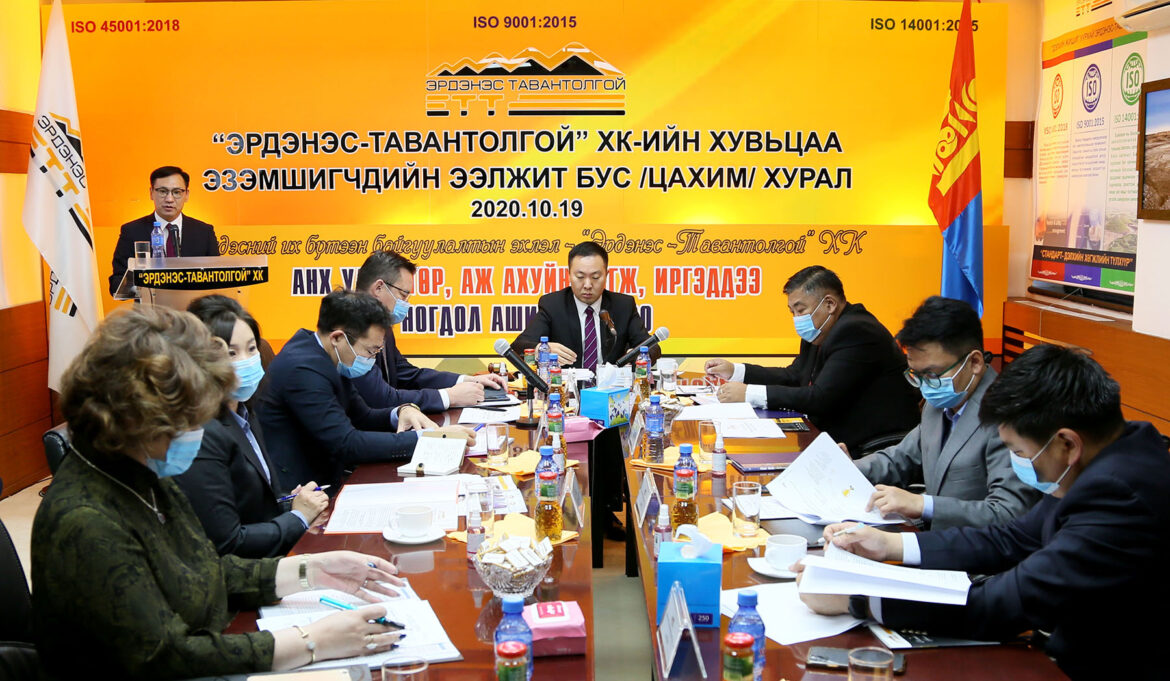 “Эрдэнэс-Тавантолгой” ХК-ийн Хувьцаа эзэмшигчдийн ээлжит бус хурал 2020 оны 10 дугаар сарын 19-ний өдрийн 10:00 цагаас компанийн байранд боллоо. Дэлхий дахинд шинэ коронавирус халдвар тархаад буйтай холбогдуулан Улсын онцгой комиссоос ирүүлсэн зөвлөмжийн дагуу “Эрдэнэс-Тавантолгой” ХК-ийн 2020 оны Хувьцаа эзэмшигчдийн ээлжит бус хурлыг цахим хэлбэрээр зохион байгуулав.